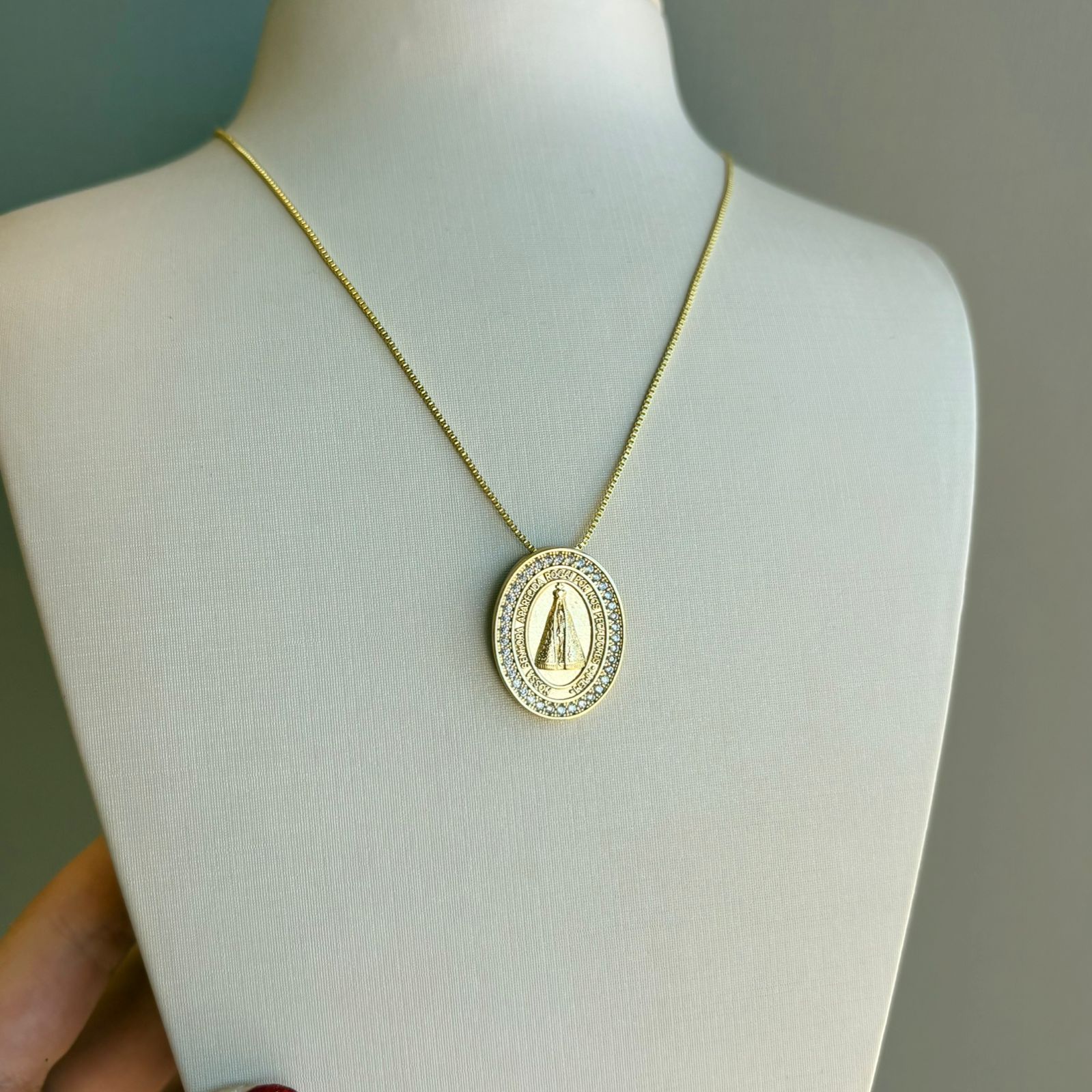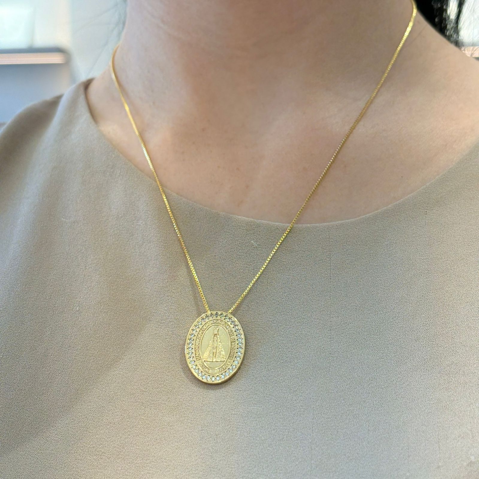 Colar Medalha Oval Zirc Nossa Senhora Aparecida