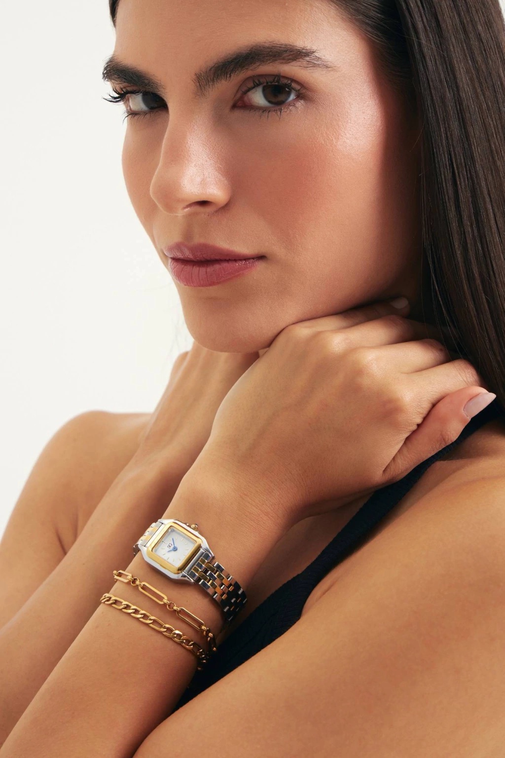 Relógio Feminino Boxy Bicolor Gold