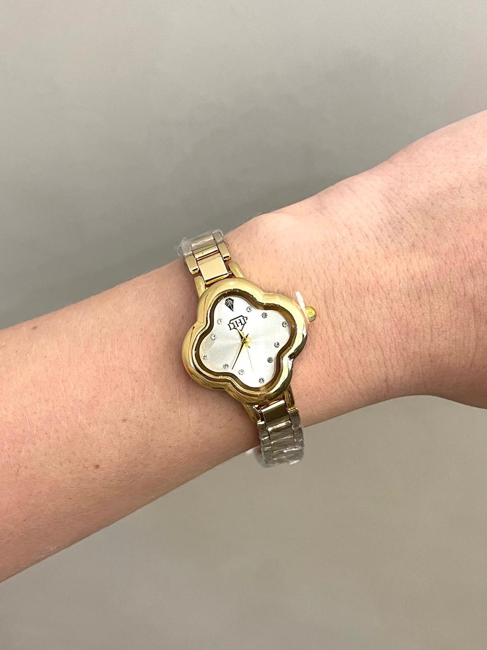 Relógio Trevo Dourado/Branco