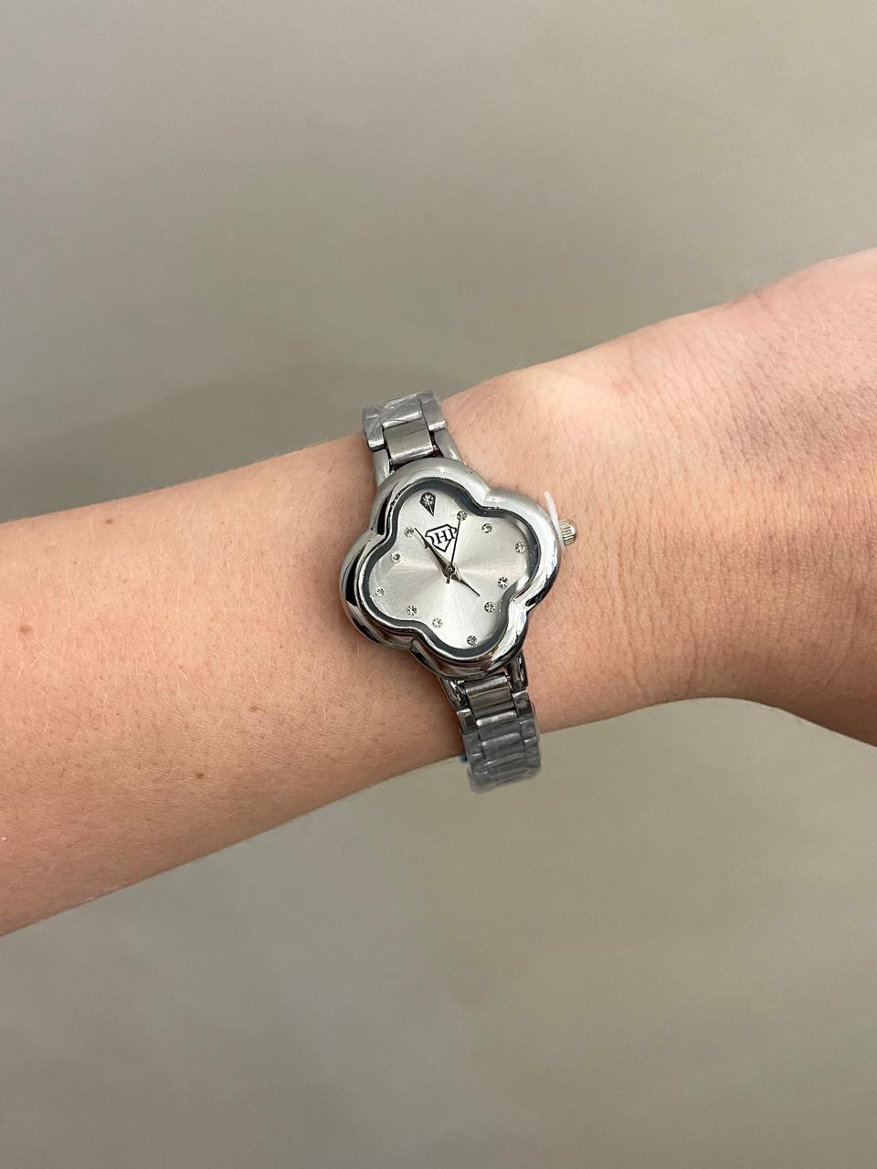 Relógio Trevo Prata/Branco