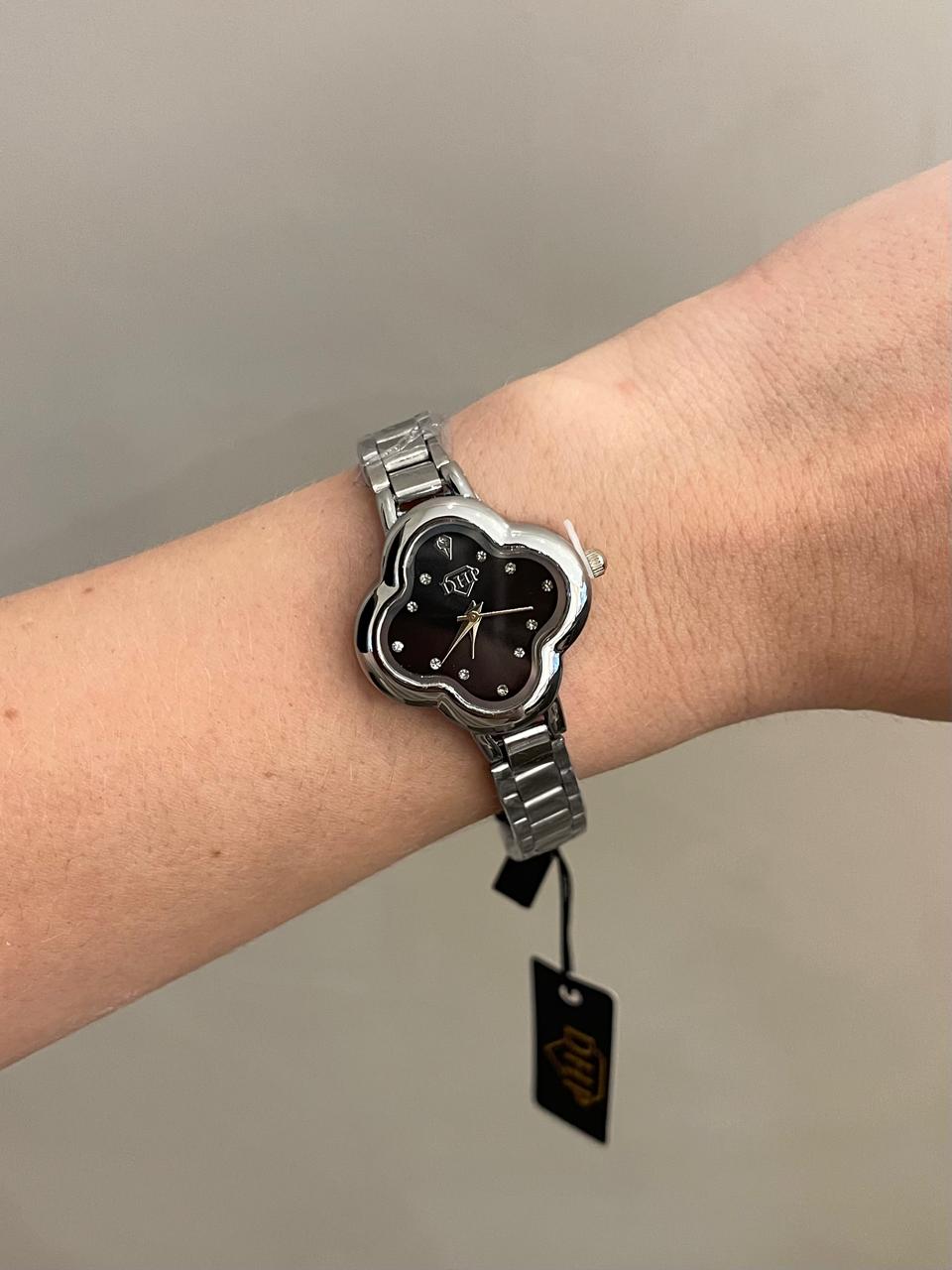 Relógio Trevo Prata/Preto